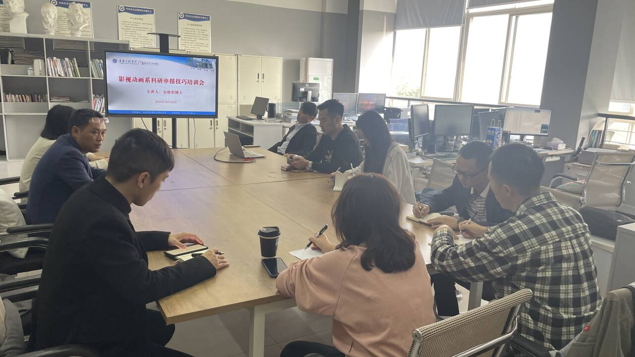 本网讯(数字艺术学院 图/文 肖容)为提升影视动画系专业教师的科研能力,将教科研团队建设任务落到实处,10月28日下午15点影视动画系在5307办公室召开了“影视动画系科研申报技巧”培训会。本次培训会由影视动画系系主任陈银伟主持,电影制作专业带头人余俊彤博士主讲,全体系部教师积极参与。
