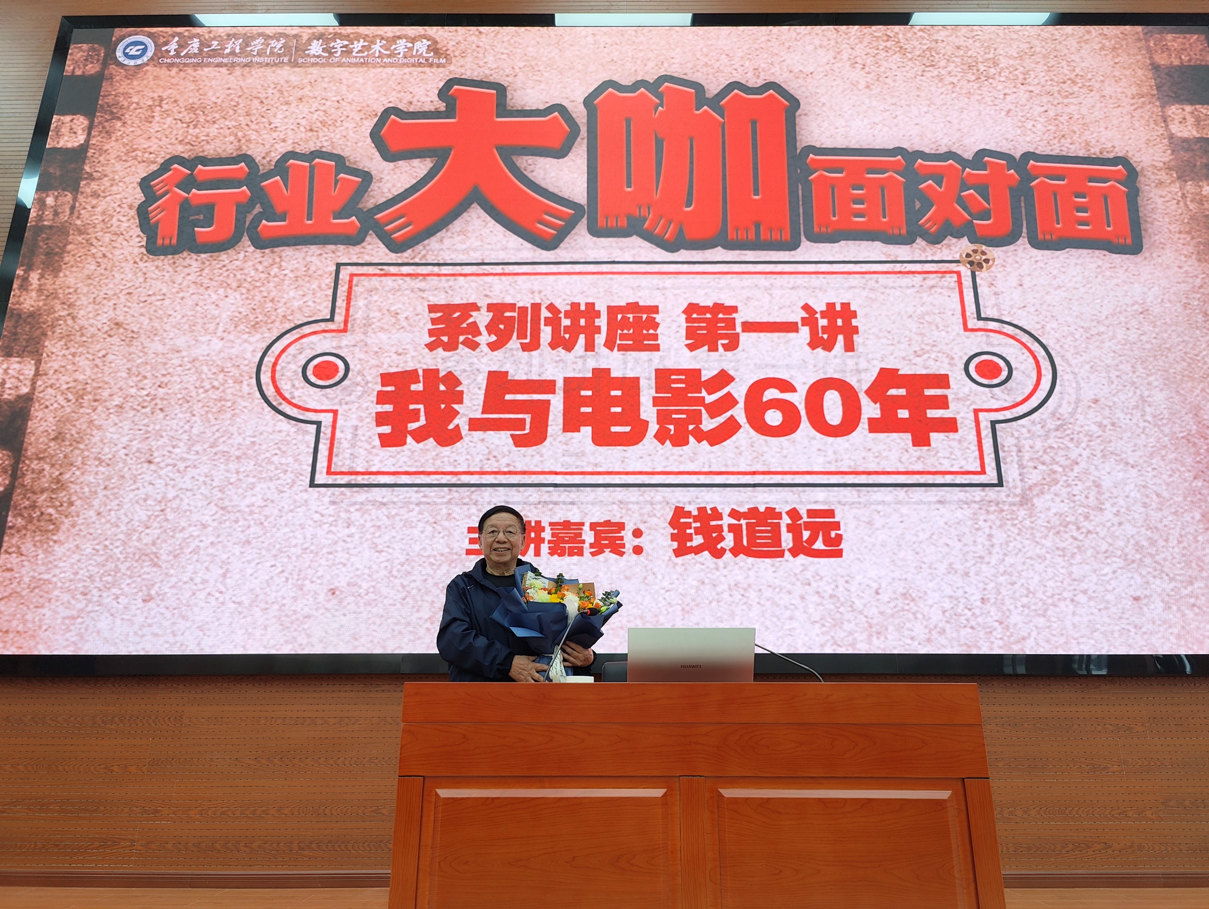 本网讯(文/图 影视动画系 陈玉坪)为助力电影制作专业发展,给学生创造与行业专家交流的契机,数字艺术学院影视动画系于10月30日下午在双桥校区第三教学楼报告厅开展“行业大咖面对面”系列讲座(一)——“我与电影六十年”。本次讲座邀请到峨眉电影制片厂著名编剧钱道远教授主讲,数字艺术学院副院长杨林林、影视动画系主任陈银伟主持,电影制作专业骨干教师、2024级电影制作专业和动画专业全体学生积极参与,共同聆听钱教授分享电影背后的精彩故事,感受电影行业的魅力与发展历程。