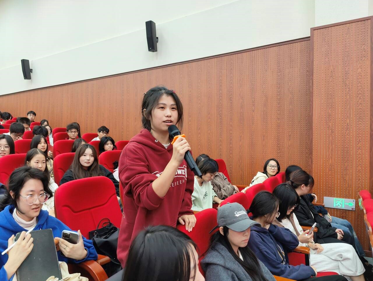 在学生提问环节,同学们积极踊跃,表现出了对电影行业的浓厚兴趣。就电影创作、行业前景等问题与钱老师进行了深入交流。钱教授耐心地解答了同学们的疑问,并给予了宝贵的建议和指导。钱教授强调,“电影制作是一门充满挑战与魅力的艺术。作品应当反映当下的社会现实,要深入生活,去观察、去体验、去感悟,这样才能创作出有深度、有温度的作品。同学们要勇于尝试新的题材、新的表现手法,突破传统的束缚,才能在激烈的竞争中脱颖而出。电影制作之路充满艰辛,但也充满无限可能。希望同学们怀揣着对电影的热爱与执着,努力前行,为中国电影事业的繁荣贡献自己的力量。”