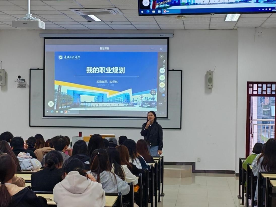 本网讯(文/图 学生科覃薇)11月10日,数字艺术学院在6301教室开展“我的职业规划”为主题的讲座。此次讲座旨在让同学们深度剖析自己,明确个人发展方向,为未来的职业生涯奠定坚实基础。学院共计318名学生参加。
