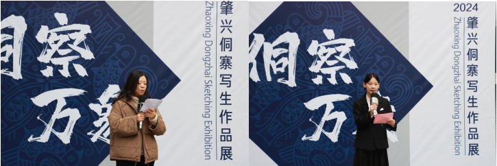 开幕式现场,首先由学院设计系主任陈娟娟简述了“侗察万象”写生展的意义,讲述了学院对艺术教育的重视。接着,学生代表闫艺凡分享了她的创作经历,强调写生是与自然对话的方式,表达了学生对艺术创作的热情。