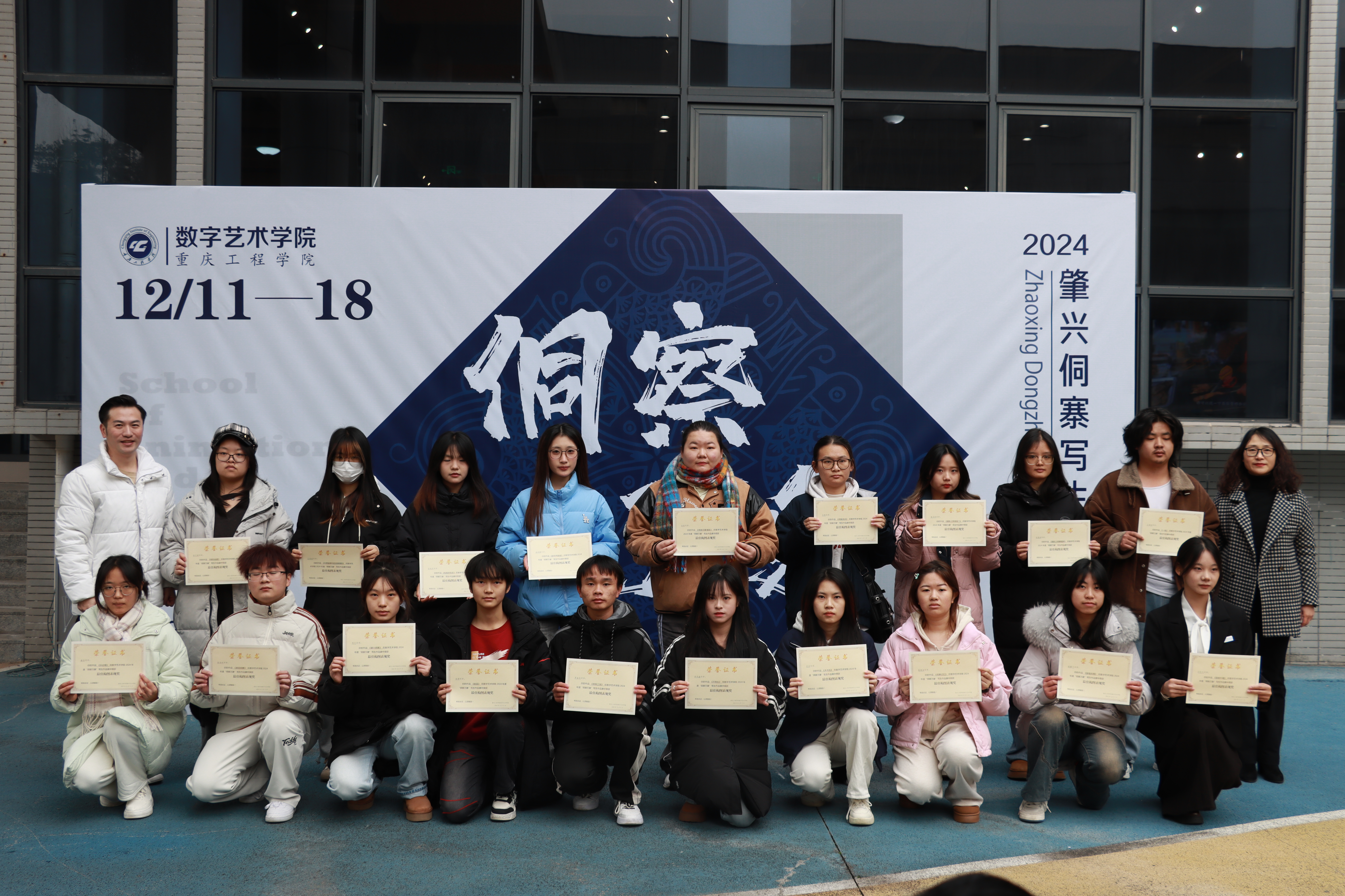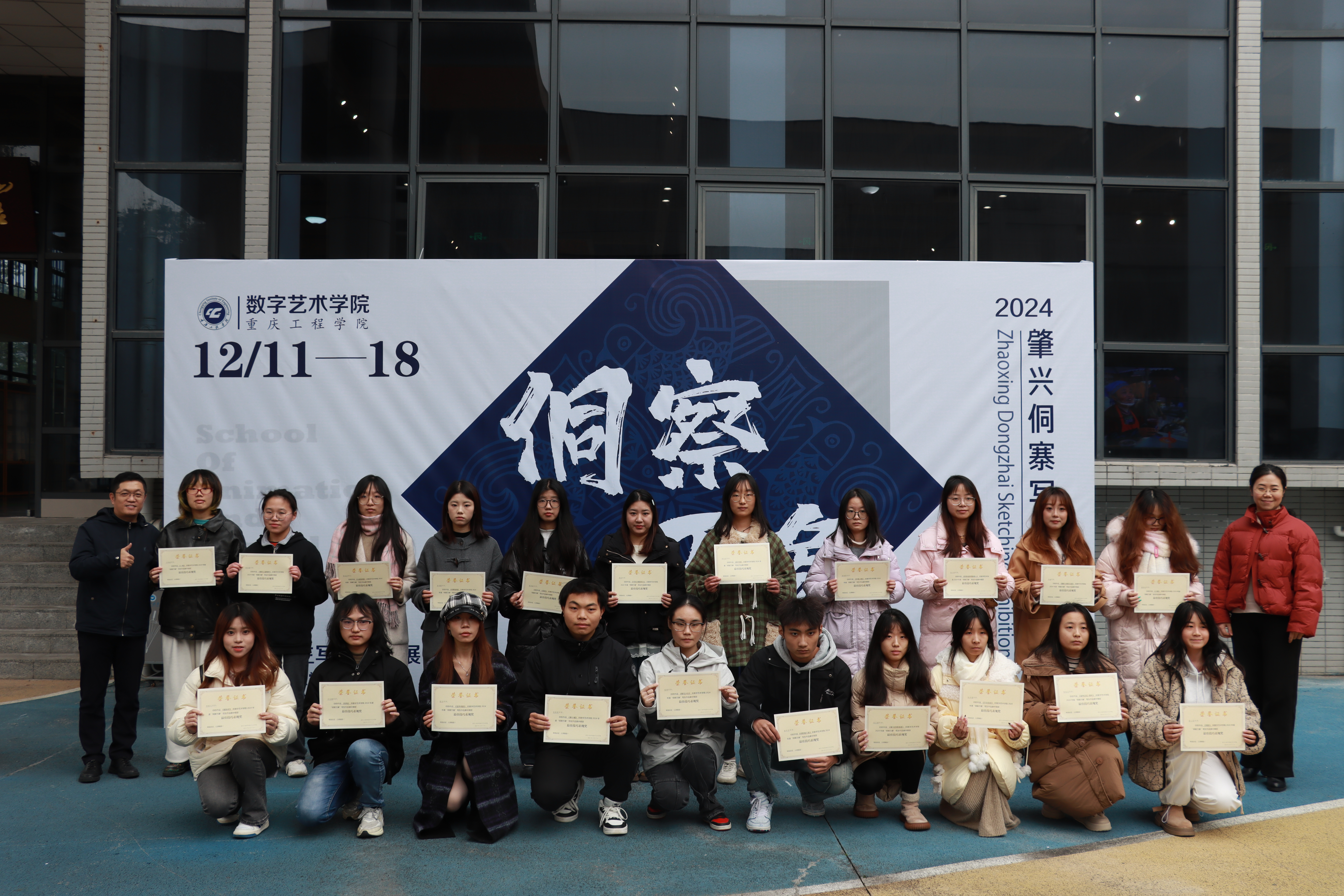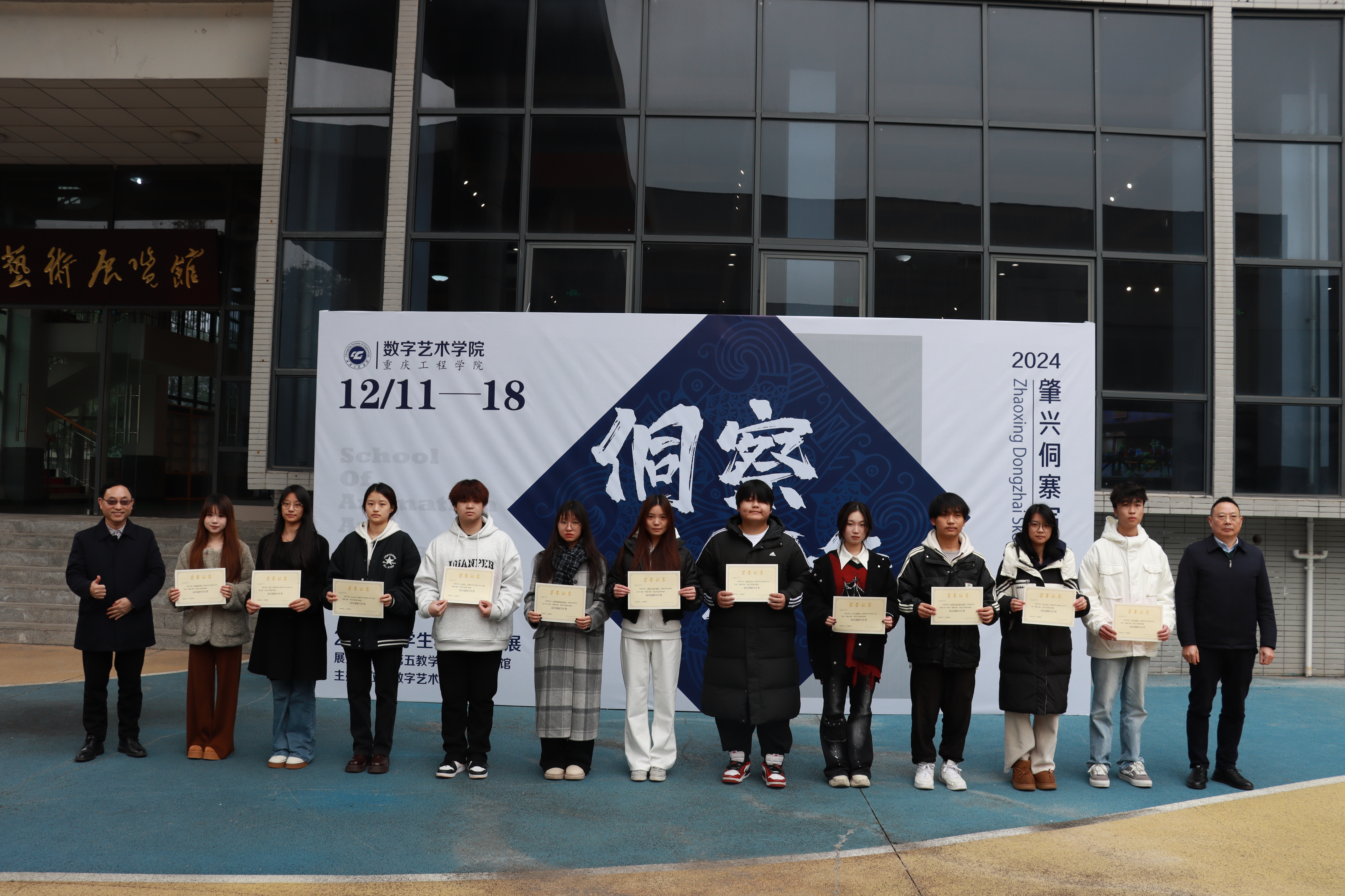 随后,学院院长助理弋玮玮宣布获奖名单,学院领导为55名获奖同学颁发获奖证书。领导们赞赏获奖学生的勤奋和才华,并鼓励他们继续在艺术道路上探索。学院院长庄涛文强调写生展是艺术教育的实践活动,希望学生提升艺术造诣,保持对生活的热爱与思考。