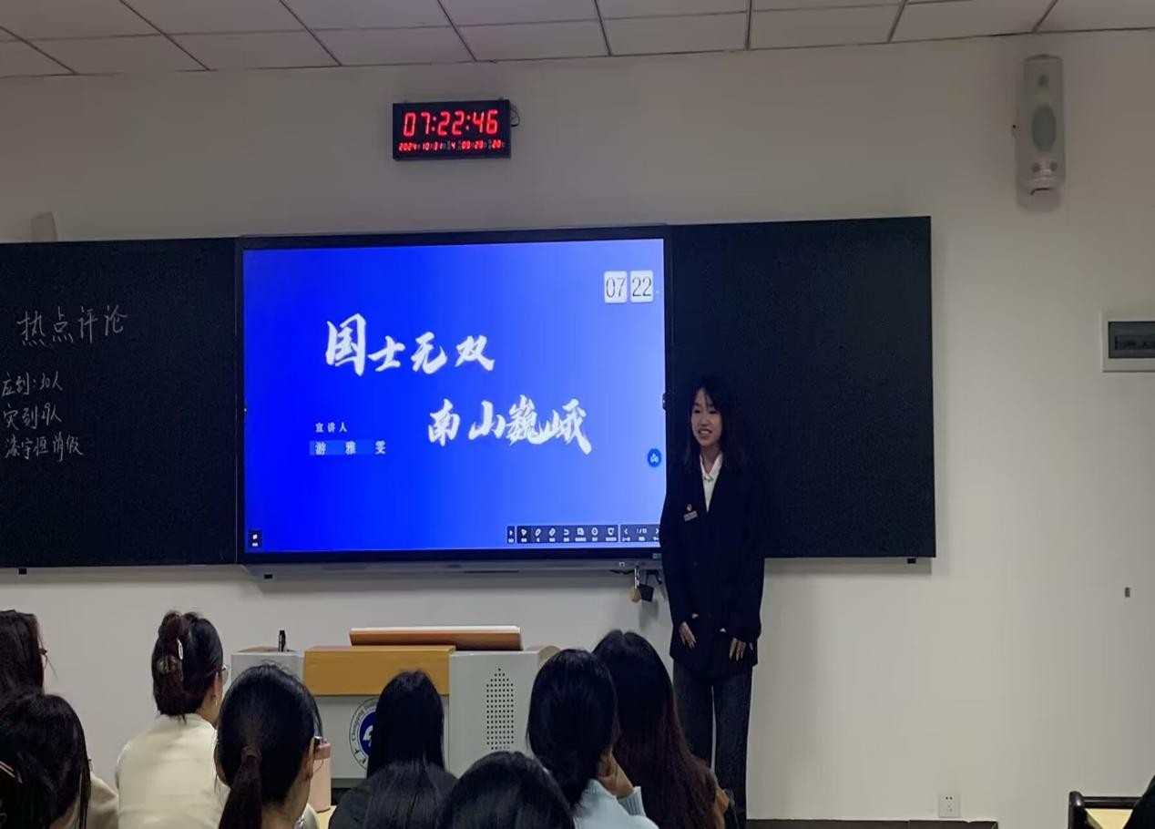 本次活动由7名同学组成宣讲团,分四组进行晨课宣讲。宣讲内容涵盖了黄大年、顾方舟、钟南山、钱三强等多位在不同历史时期作出杰出贡献的英雄人物。宣讲团成员通过生动的语言和感人至深的故事,将英雄们的坚定信仰、无私奉献和英勇斗争的精神淋漓尽致地展现出来,引发了在场师生的强烈共鸣。同学们纷纷表示,作为新时代的大学生,肩负着民族复兴的历史使命,要向先辈们学习,为祖国的繁荣富强贡献自己的力量。