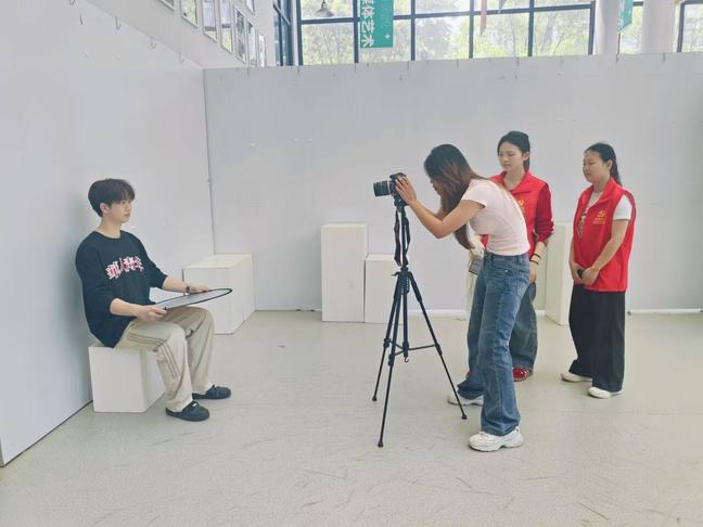 本网讯(文/图 陈兴航)4月9日下午,数字艺术学院党总支在艺术展览馆内开展了“最美证件照”志愿服务活动,为学生提供专业证件照拍摄服务。