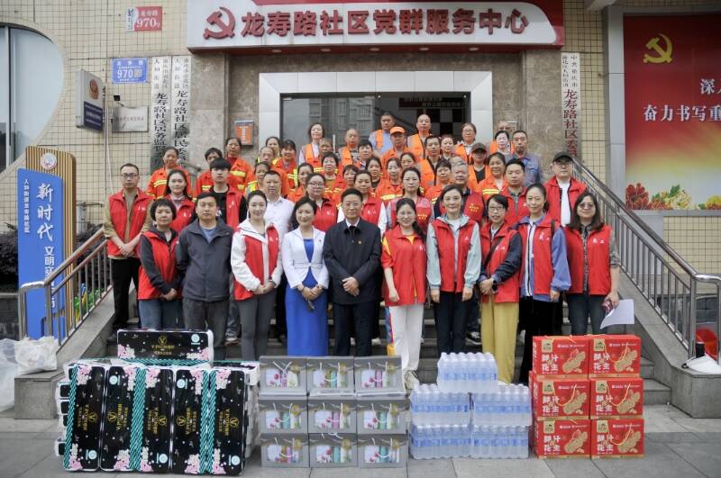 本网讯(文/图 吴政宏)4月30日,在“五一”国际劳动节将要到来之际,数字艺术学院党总支联合重庆市礼仪文化研究会党支部等多个党支部在人和街道龙寿路社区开展“劳动最光荣 关爱暖人心”公益慰问活动。