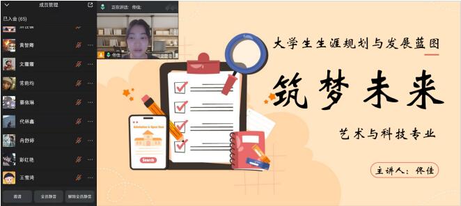 本网讯(文/佟佳)5月22日,我院艺术与科技专业成功举办“筑梦未来:大学生生涯规划与发展蓝图”线上专题讲座,由专业负责人佟佳老师主讲。