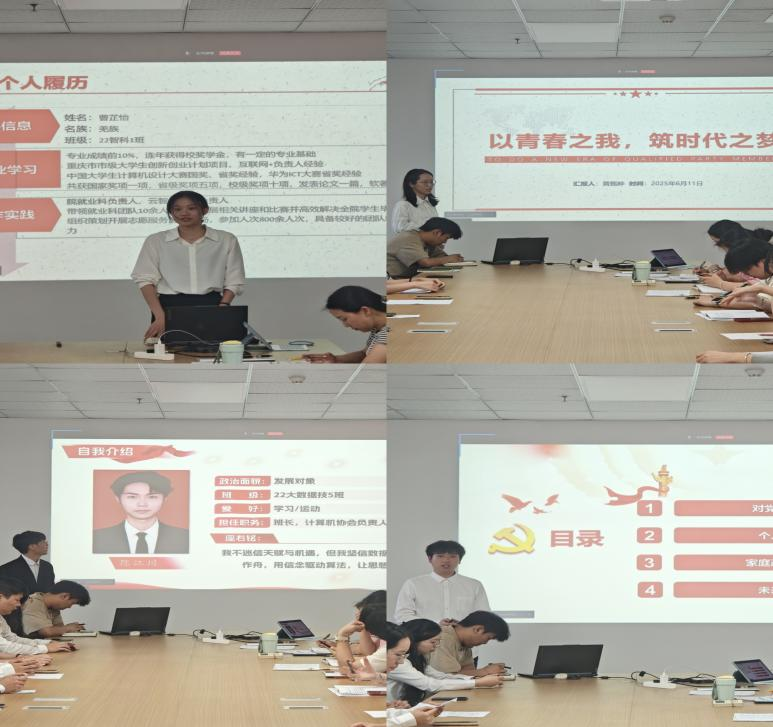 本网讯(图/文 大数据与人工智能学院 胡漫)为不断优化我院党员队伍素质,激励青年学子紧跟党的步伐,迈向新的奋斗征程,大数据与人工智能学院数据科学与智能科学学生党支部于6月11日在7205党政会议室组织开展六月党员大会。此次会议由学生党支部书记刘雪梅主持,支部全体党员参与此次会议。
