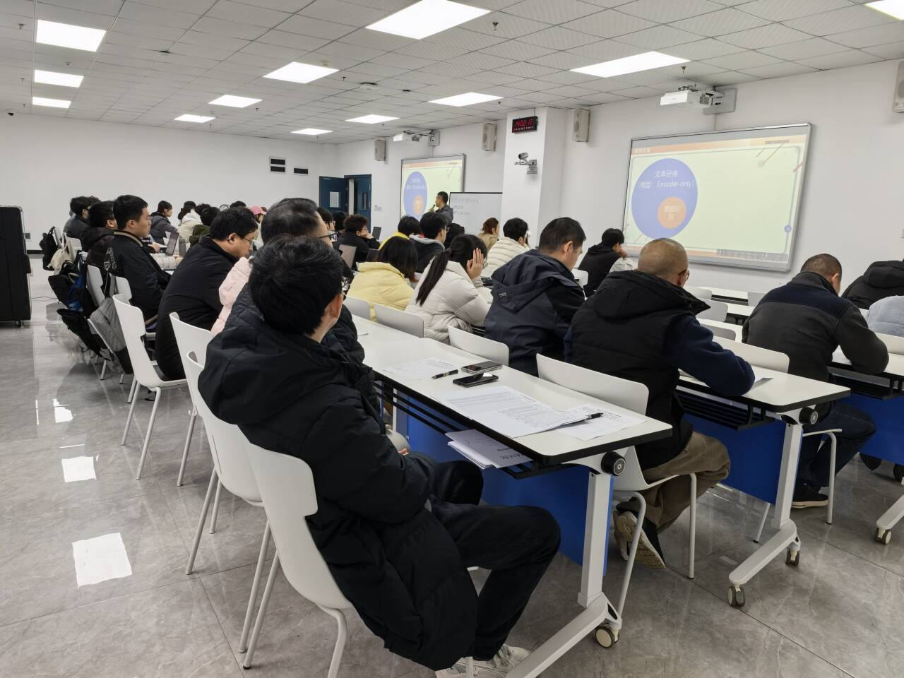 本网讯(文/图 大数据与人工智能学院 慕江林)近日,大数据与人工智能学院组织开展2025-2026学年第一学期院级公开课观摩活动。本次观摩课由慕江林老师主讲,课程为《语言模型应用开发实训》,授课内容聚焦“意图识别模块的开发——Encoder-only模型选型与Hugging Face模型加载测试”,充分体现了“技术驱动、应用落地”的教学理念。